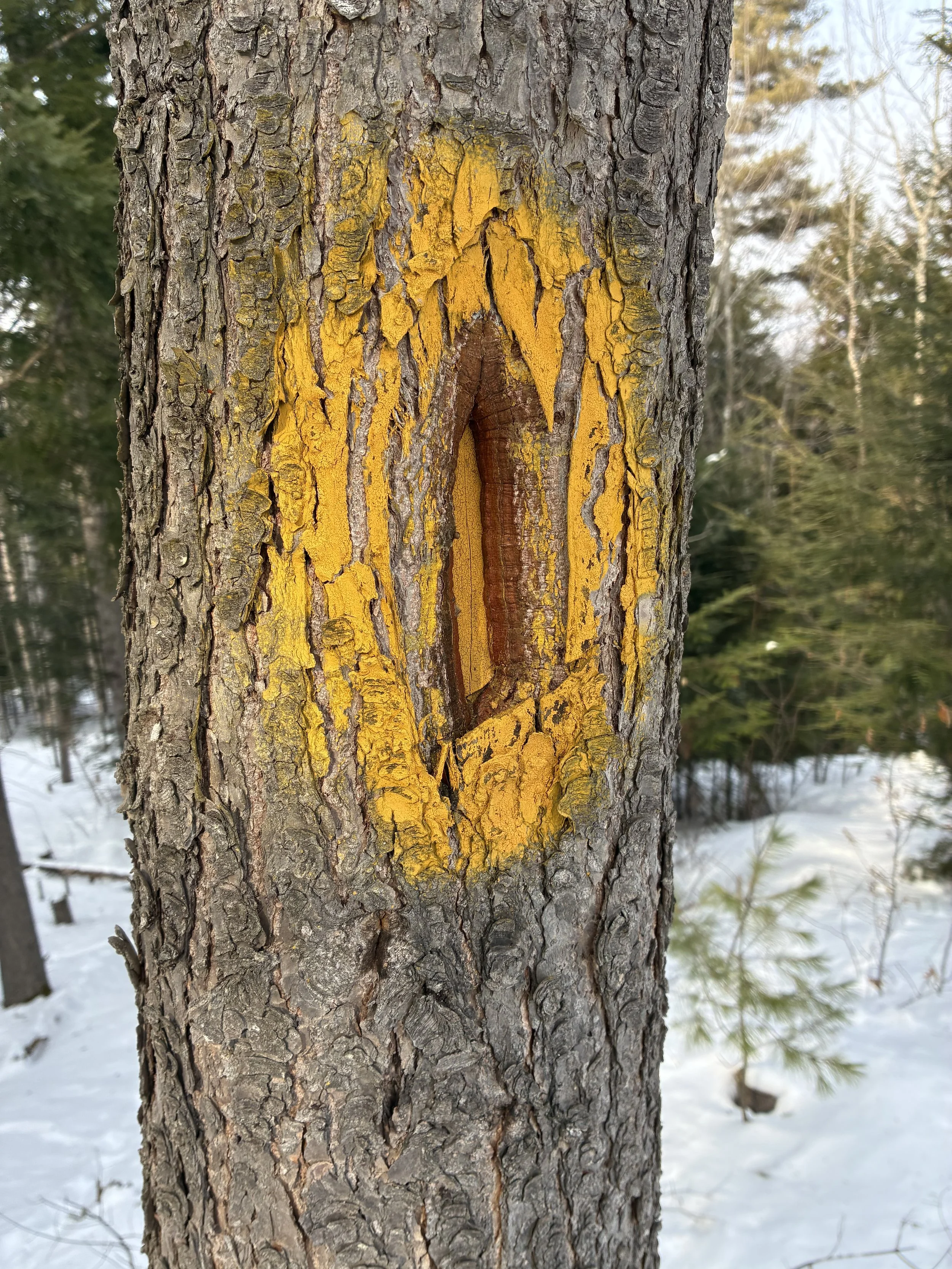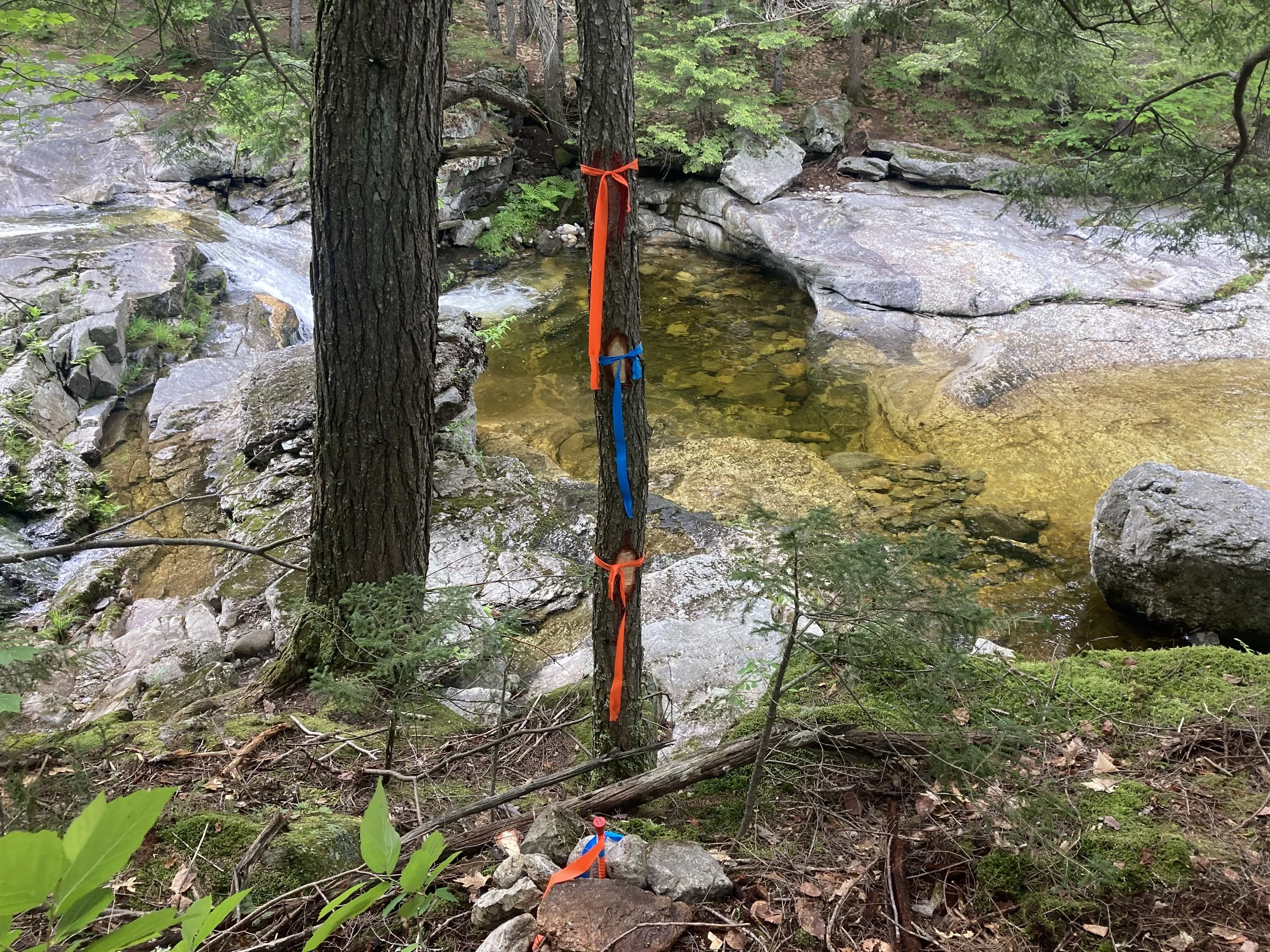 Physical boundary marked after completion of survey. This can be done with blazing and painting or plastic flagging.